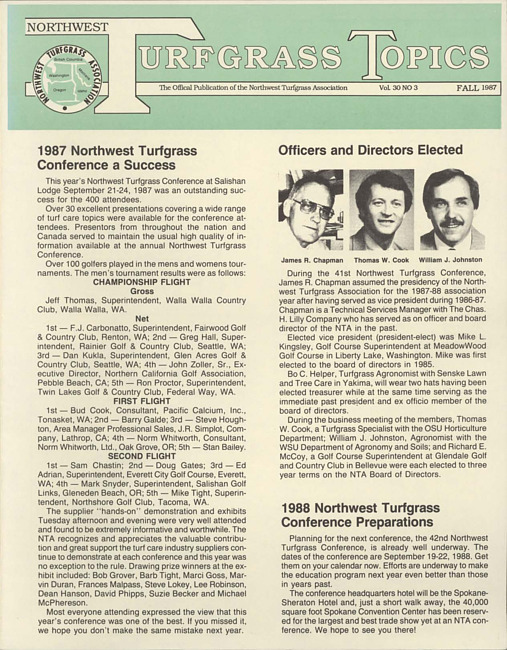 Northwest turfgrass topics. Vol. 30 no. 3 (1987 Fall)