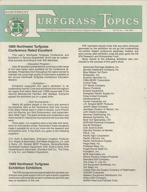 Northwest turfgrass topics. Vol. 33 no. 1 (1989 Fall)