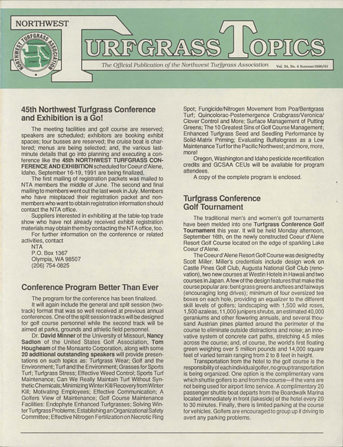 Northwest turfgrass topics. Vol. 34 no. 4 (1990/1991 Summer)