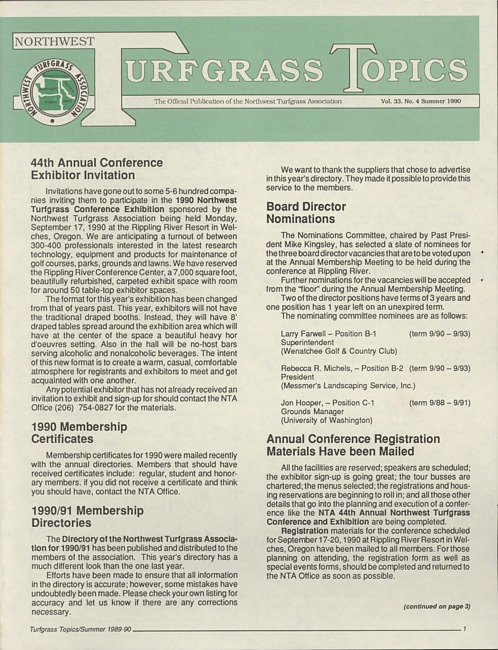 Northwest turfgrass topics. Vol. 33 no. 4 (1990 Summer)