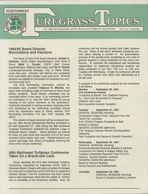 Northwest turfgrass topics. Vol. 37 no. 3 (1994 Spring)