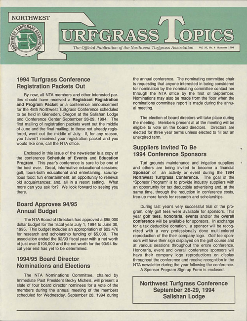 Northwest turfgrass topics. Vol. 37 no. 4 (1994 Summer)