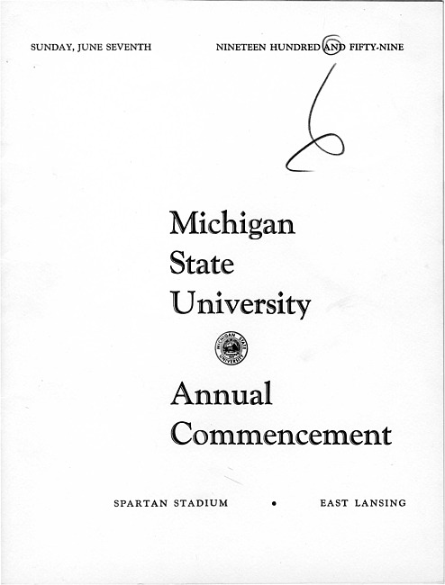 These programs detail the commencement exercises from each year. Details include the topic of speeches given, the individuals who spoke at each ceremony, and the music played. Additional years available for viewing by appointment on site at the Michigan State University Archives and Historical Collections.
