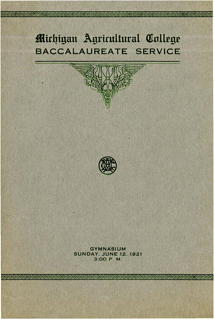 These programs detail the commencement exercises from each year. Details include the topic of speeches given, the individuals who spoke at each ceremony, and the music played. The 1921 program does not list the graduates.