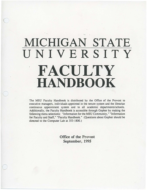 Faculty handbook for the 1995 academic year. Includes information regarding organization, university policies, academic personnel policies, instruction, research and creative endeavor, and faculty and academic staff retirement and benefit programs.