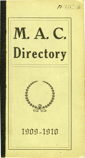 1909-1910 Michigan Agricultural College faculty and student directory.