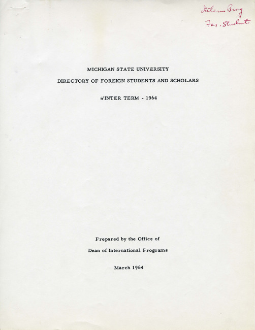 Michigan State University directory of foreign students and scholars. (Winter term 1964)