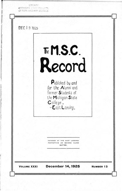 The M.S.C. record. Vol. 31 no. 13 (1925 December 14)
