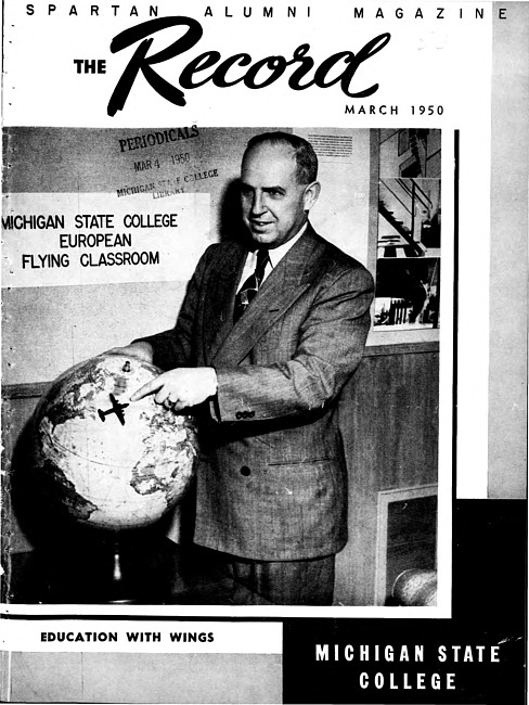 Major articles in this issue include: More Than 40,000 Person Attend Week-Long Farmers' Week at MSC -- Home Ec Alumnae Plan May Reunion -- Worthington Resigns; Two Alumni Join Staff -- MSC's "Flying Prof" Leads Unique Air-Borne Classroom to Europe -- Museum Unveils New Beaver Habitat Group -- Record Alumni Crowd is Expected June 2-4 -- The Affairs of State -- On the Cover... -- MSC Herbarium Serves as Valuable Research Laboratory in Many Fields -- Thousands of Alumni See MSC Through New Movie -- New Greenhouse Range Will Increase Research -- MSC Men's Glee Club Embarks on State Concert Tour March 22 -- Bagwell Writes Forward for "City in the Forest" -- Proposed Center for Veterinary Medicine as MSC -- Return Athletics to Faculty Control, Hannah Asks in Philadelphia Speech -- Veteran Track Team Aims for National Honors -- Michigan State's 1950 Boxing Team is Loaded with Power and Experience -- Rapchak Breaks Basketball Record in Marquette Game -- Washington State Gets Evashevski and Flora; Sebo New Frosh Coach -- Southern Tour Opens MSC Baseball Season -- Basketball in Brief "Wait Until Next Year" -- Following Alumni Clubs -- News About these Alumni -- Nearly 1,000 Alumni are Located in Drive -- Necrology... -- Alumni Bryant and Stone Receive New Positions -- Presidents Confer -- Wins Outstanding Jaycee Award