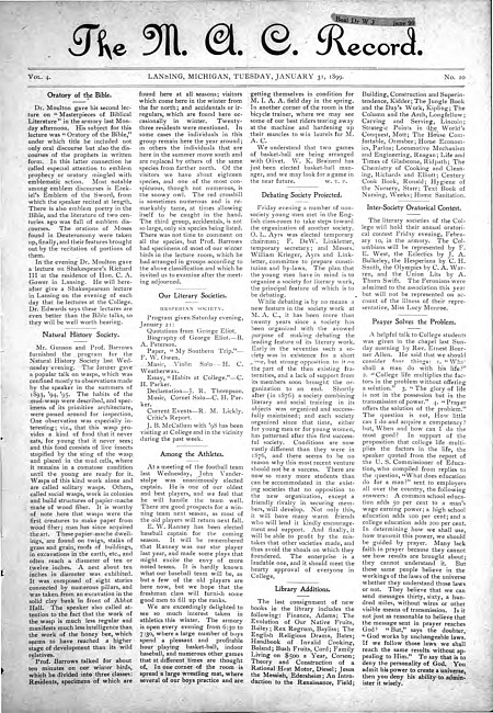 The M.A.C. record. Vol. 4 no. 20 (1899 January 31)