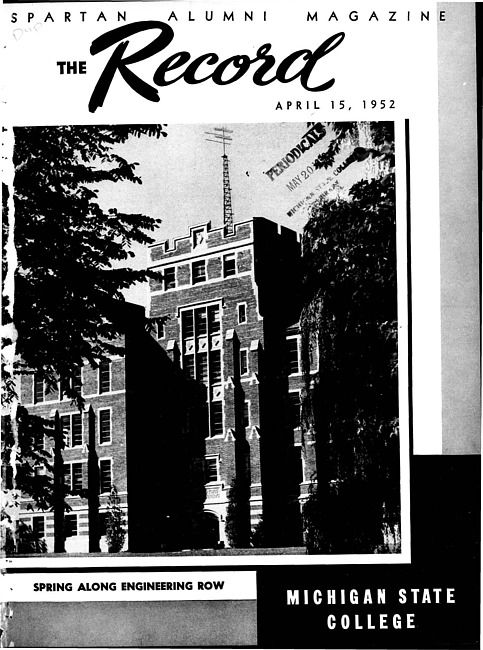 Major articles in this issue include: Letters to the Editor -- Alumni-Commencement Events to Culminate School Year June 7-8 -- MSC's Basic College is Revised; First Changes Planned for Fall Term -- William H. Berkey Dies in Cassopolis March 22 -- High School Students, Parents to Visit Campus -- Four Graduates Named to High Alumni Posts -- Home Ec Alumnae Day Set for Campus May 17 -- College's First Home Economics Dean Dies -- Architect's Drawing of Animal Industries Building -- Scientists Perfect New Time-Saving Methods of Once-Over Soil Tillage -- Outstanding MSC Alumni Appear on Hort Series -- England's Most Successful Farmer Succeeds in Bout with Socialism -- Alumnus Invents New Midget Salt Plant -- Former Anatomy Head Dies -- Affairs of State -- On the Cover... -- The Spring Prospectus -- New Captains -- Ex-Spartan Star Dies -- Spartan Swimmer Makes History in Big Ten Meet -- Spartan Athletes Set Their Sights on World Competition in Olympics -- Erickson Takes New Post -- Winter Record Tops -- Covering the Clubs -- Days of Yore -- News About these Alumni -- Necrology -- Amell, Frimodig Boast Gallant War Records