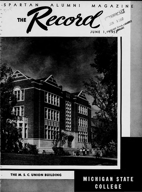 Major articles in this issue include: Letters to the Editor -- Gasser Will Wield Gavel Initially as Council Head -- College to Host Old Grads June 7-8 -- College to Begin Building New Women's Dormitory -- Alumni Day - Commencement Program -- Heads Natural Science -- MSC to be Center for Heavy Summer Activity -- College Names Four Faculty Members to Top Posts -- Emmons, Ballard Retirements Head List of Changes Approved for MSC -- Solons Give MSC Deflated Budget Construction, Operations Curtailed -- John C. Leonard, '48, Named Record Editor -- Dr. Dickson Receives High Teaching Honor -- Affairs of State -- Sore Arms -- Spring Activities -- Sing for Soldiers -- Roy Schoenmann Dies -- Hannah Backs Point 4 -- Books and Offices -- Faculty Spotlight -- On the Cover... -- Spartan Sports -- The Old Ball Game -- Biggie Starts Rebuilding -- Football Ticket Sale -- Up the Fistic Ladder -- Olympic Fund Drive -- Covering the Clubs -- News About these Alumni -- Necrology -- Former Spartan Listed as Missing in Training -- Charles E. Kellogg, '25, Publishes Second Book "Our Garden Soils"