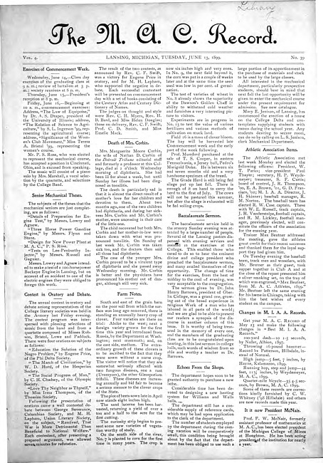 The M.A.C. record. Vol. 4 no. 39 (1899 June 13)