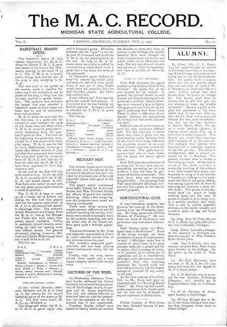 The M.A.C. record. Vol. 8 no. 20 (1903 February 3)