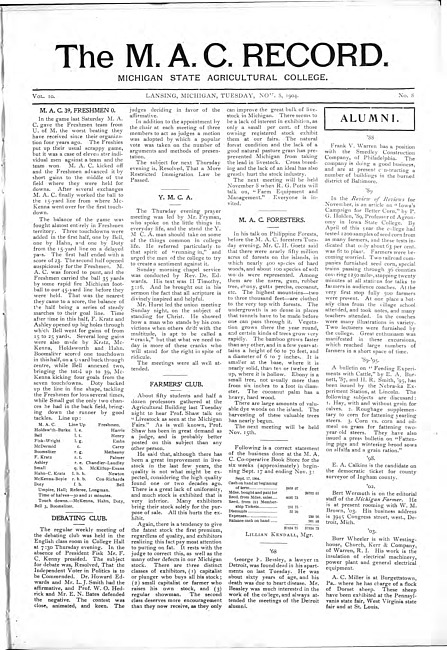 The M.A.C. record. Vol. 10 no. 8 (1904 November 8)