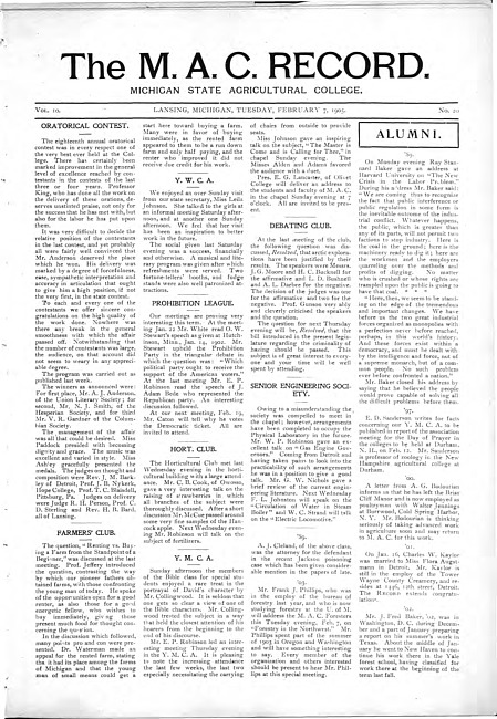 The M.A.C. record. Vol. 10 no. 20 (1905 February 7)