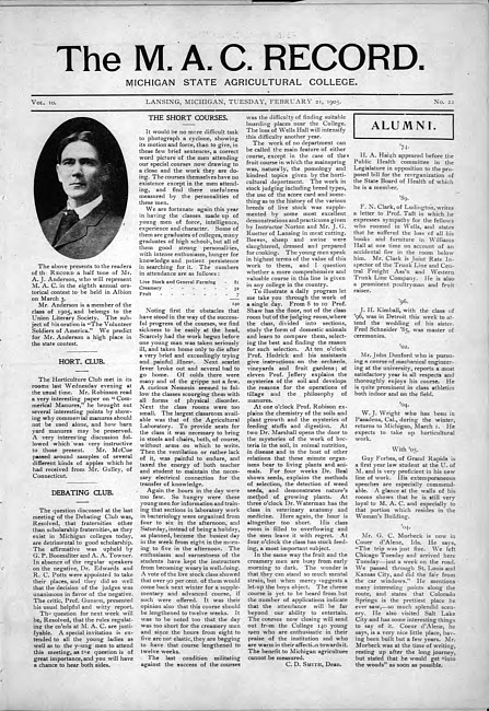 The M.A.C. record. Vol. 10 no. 22 (1905 February 21)