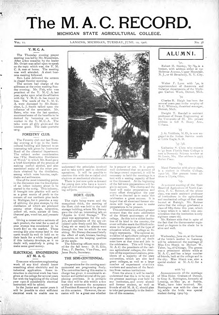 The M.A.C. record. Vol. 11 no. 38 (1906 June 12)