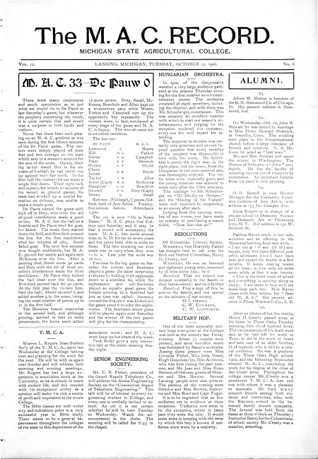 The M.A.C. record. Vol. 12 no. 6 (1906 October 23)