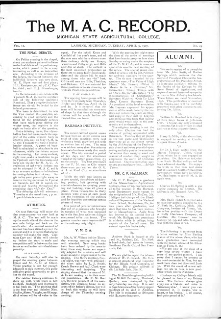 The M.A.C. record. Vol. 12 no. 29 (1907 April 9)