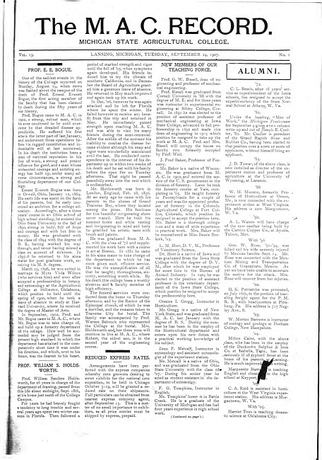 The M.A.C. record. Vol. 13 no. 1 (1907 September 24)