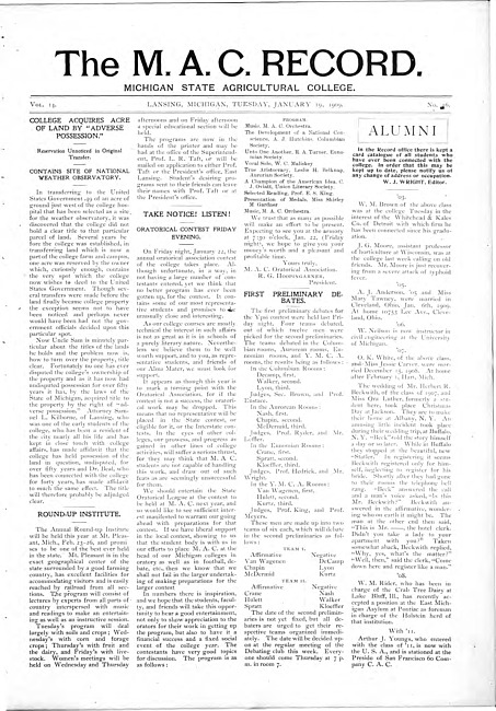The M.A.C. record. Vol. 14 no. 16 (1909 January 19)