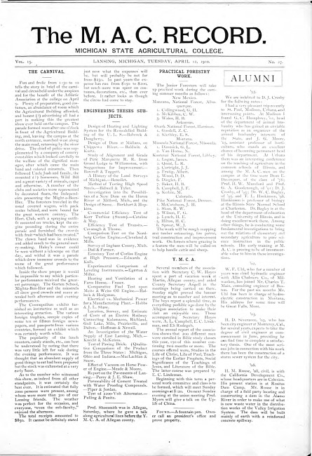 The M.A.C. record. Vol. 15 no. 27 (1910 April 12)