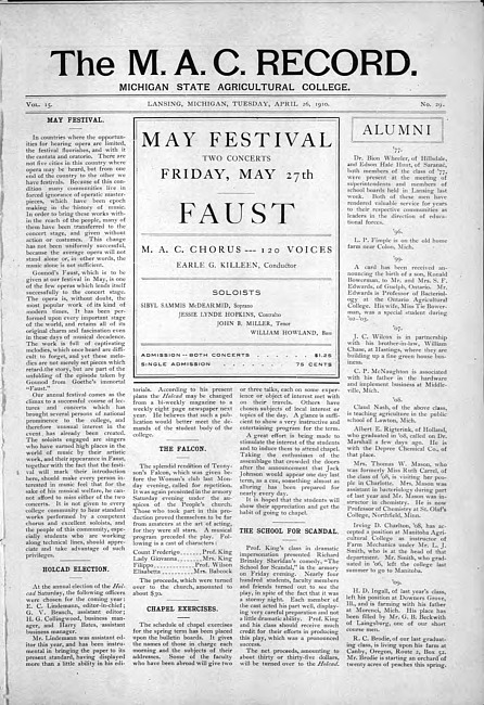 The M.A.C. record. Vol. 15 no. 29 (1910 April 26)