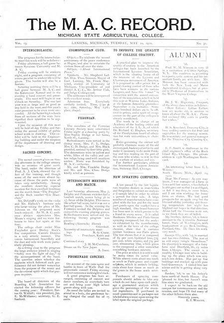 The M.A.C. record. Vol. 15 no. 31 (1910 May 10)