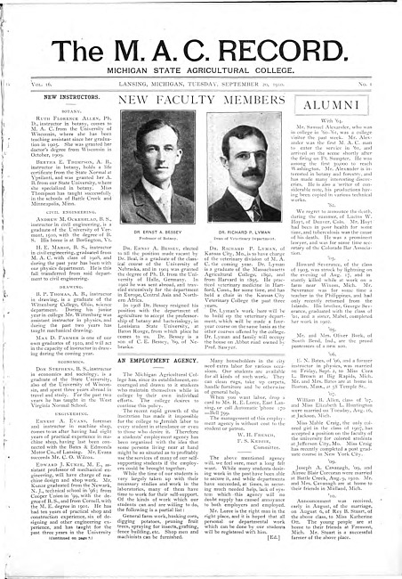 The M.A.C. record. Vol. 16 no. 1 (1910 September 20)