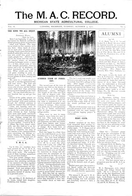 The M.A.C. record. Vol. 16 no. 3 (1910 October 4)