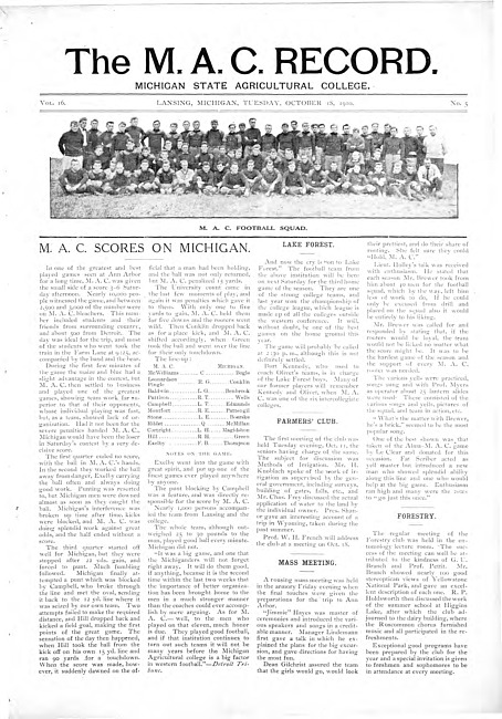 The M.A.C. record. Vol. 16 no. 5 (1910 October 18)