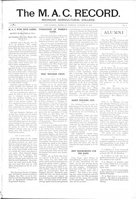 The M.A.C. record. Vol. 18 no. 5 (1912 October 22)