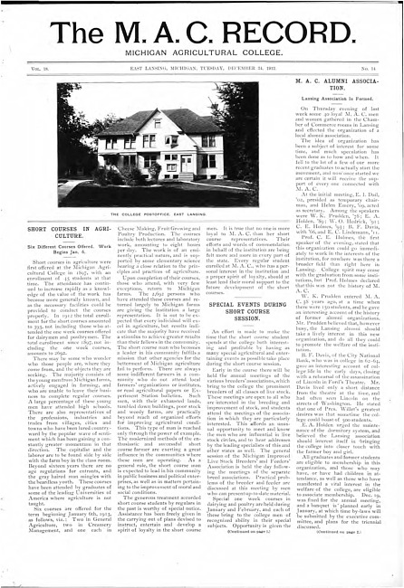 The M.A.C. record. Vol. 18 no. 14 (1912 December 24)