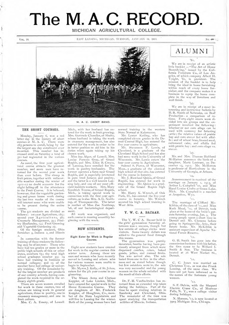 The M.A.C. record. Vol. 18 no. 16 (1913 January 14)