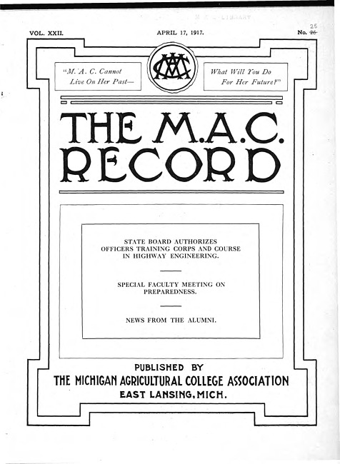 The M.A.C. record. Vol. 22 no. 25 (1917 April 17)