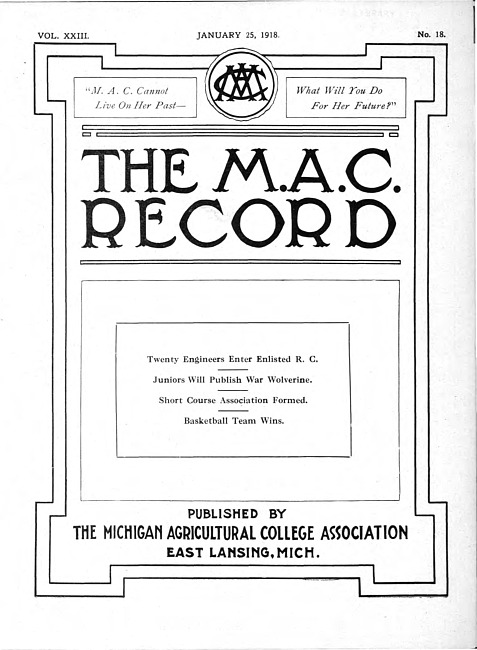 The M.A.C. record. Vol. 23 no. 18 (1918 January 25)