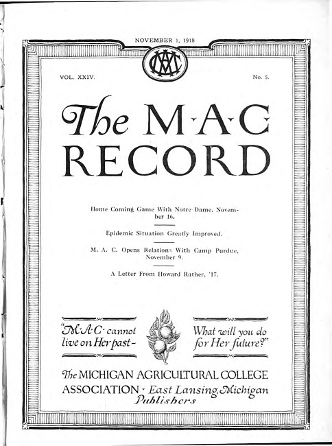 The M.A.C. record. Vol. 24 no. 5 (1918 November 1)