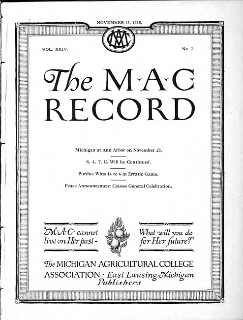 The M.A.C. record. Vol. 24 no. 7 (1918 November 15)
