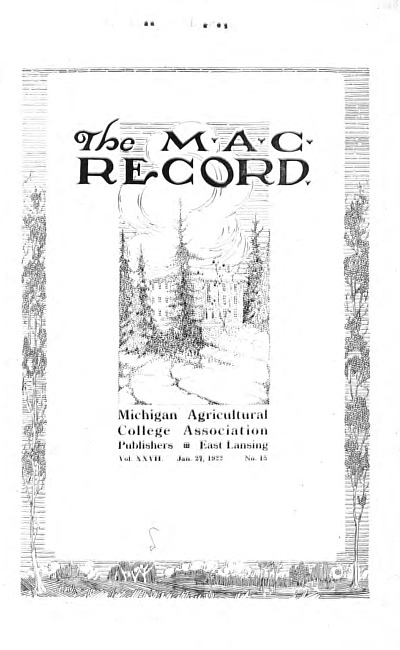 The M.A.C. record. Vol. 27 no. 15 (1922 January 27)