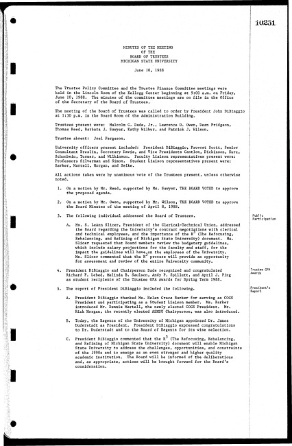 Meeting minutes, June 10, 1988