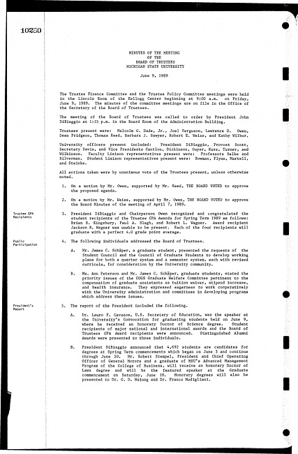 Meeting minutes, June 9, 1989