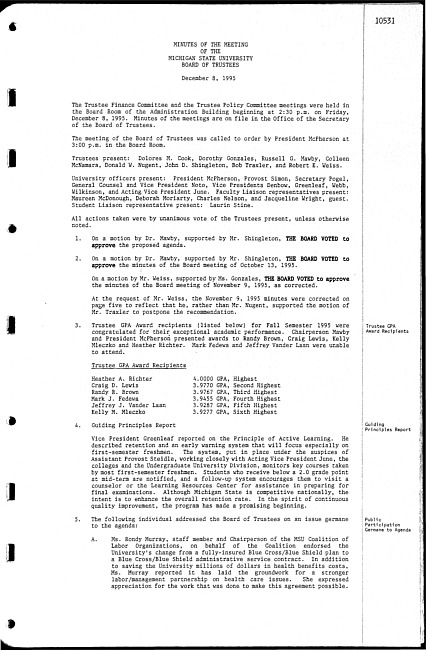 Meeting minutes, December 8, 1995