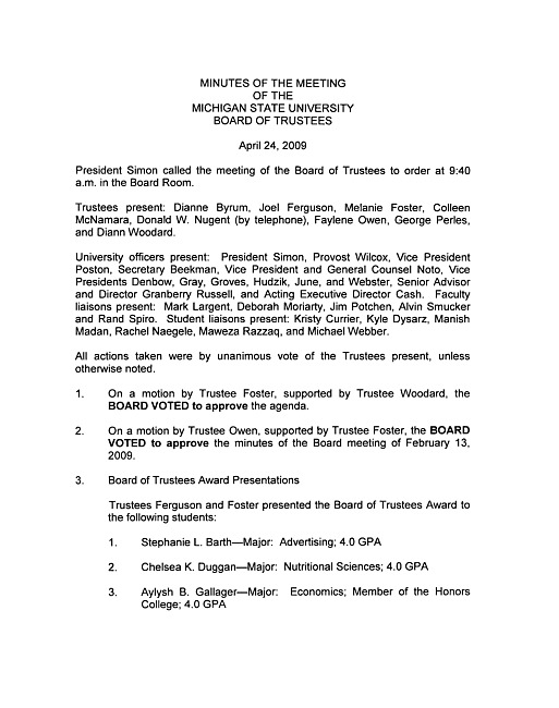 Meeting minutes, April 24, 2009