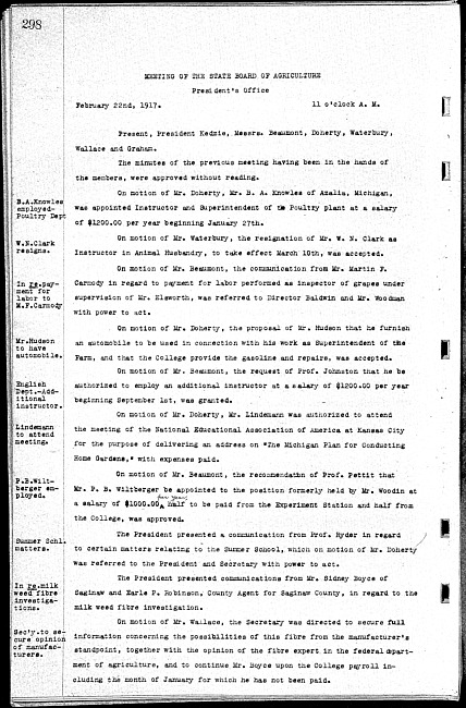 Meeting minutes, February 22, 1917