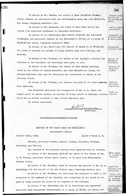 Meeting minutes, October 16, 1918