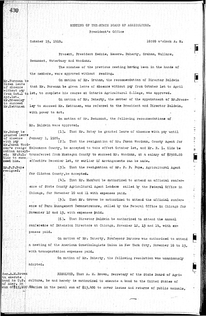 Meeting minutes, October 15, 1919