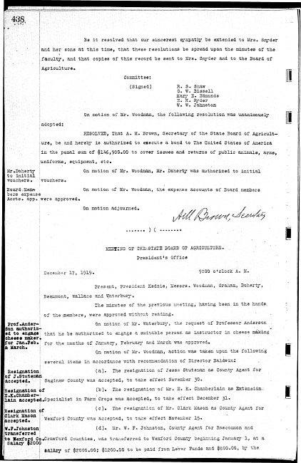 Meeting minutes, December 17, 1919