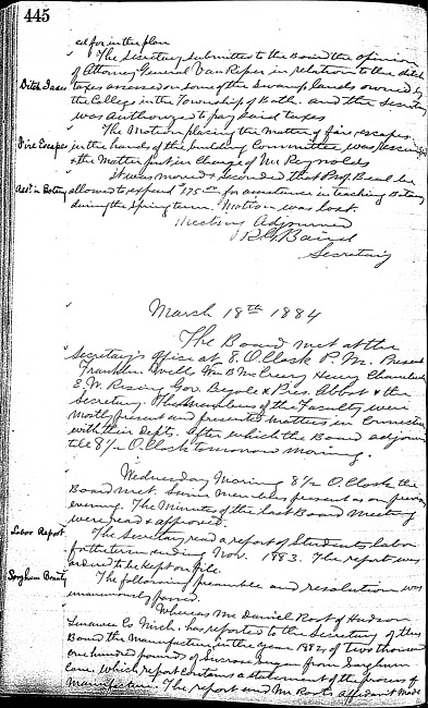 Meeting minutes, 1884