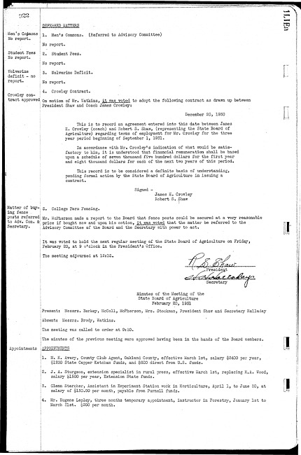 Meeting minutes, February 20, 1931